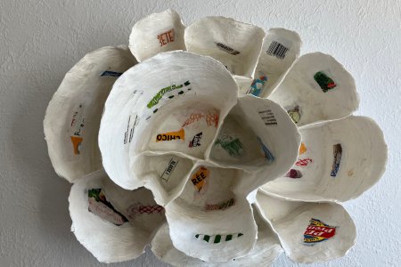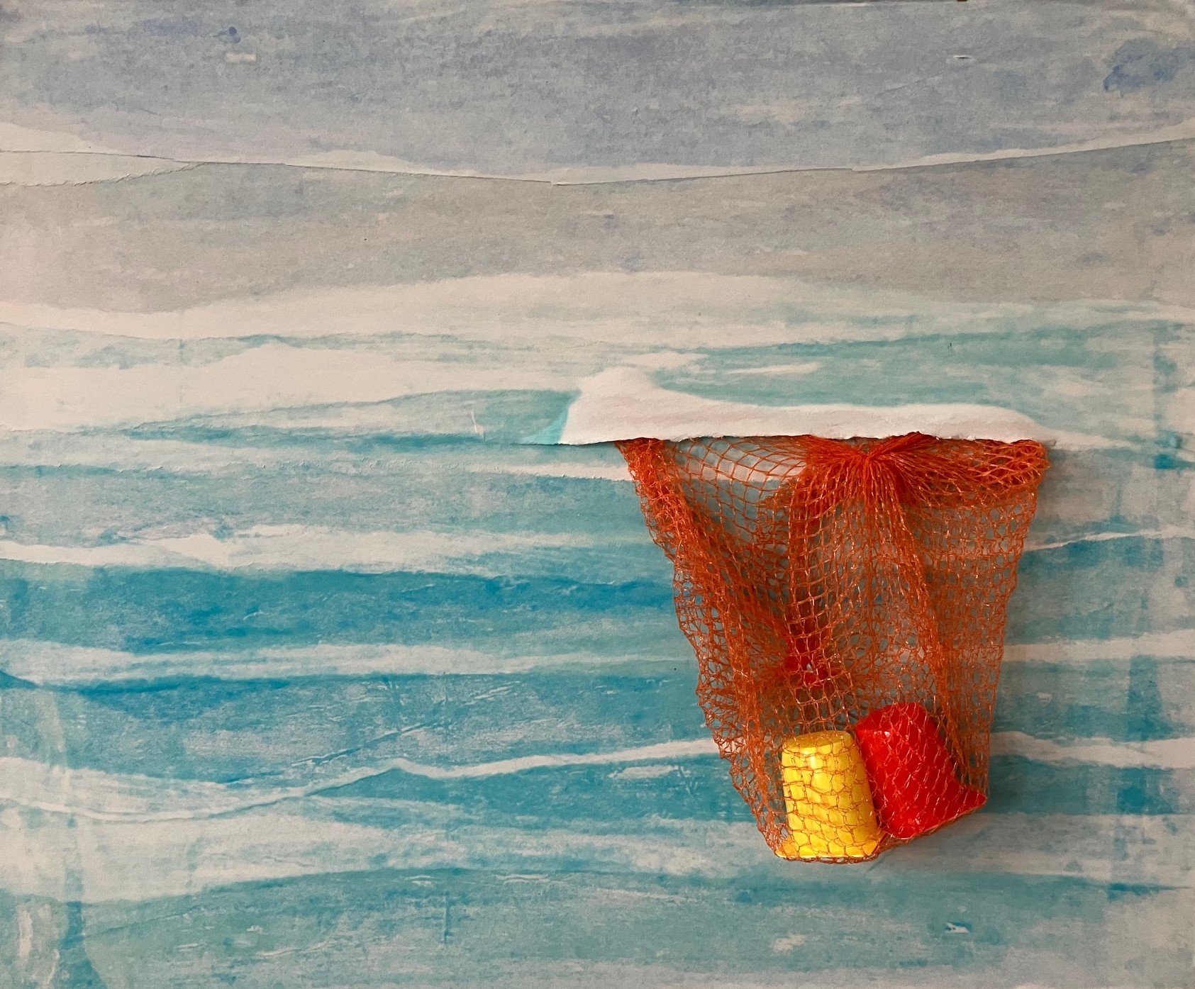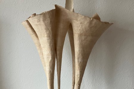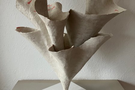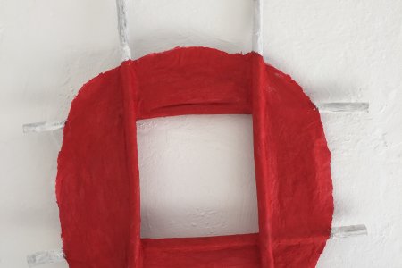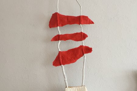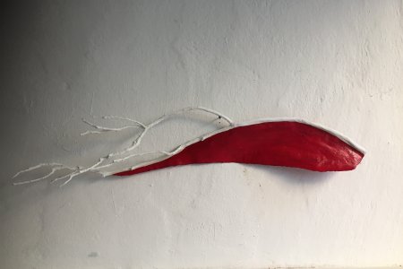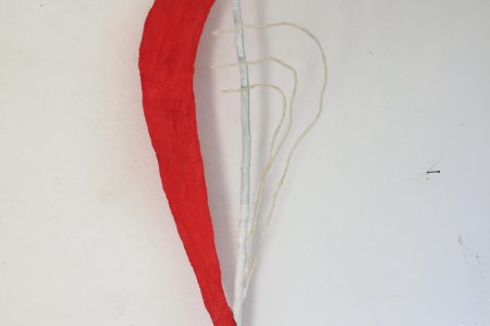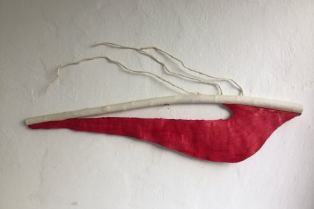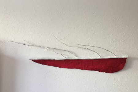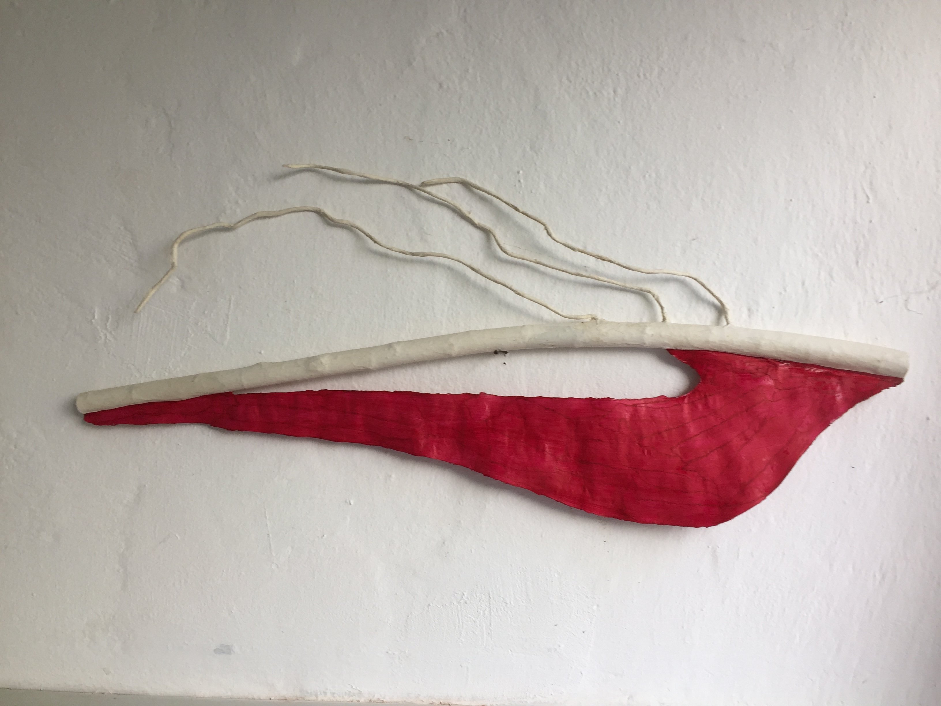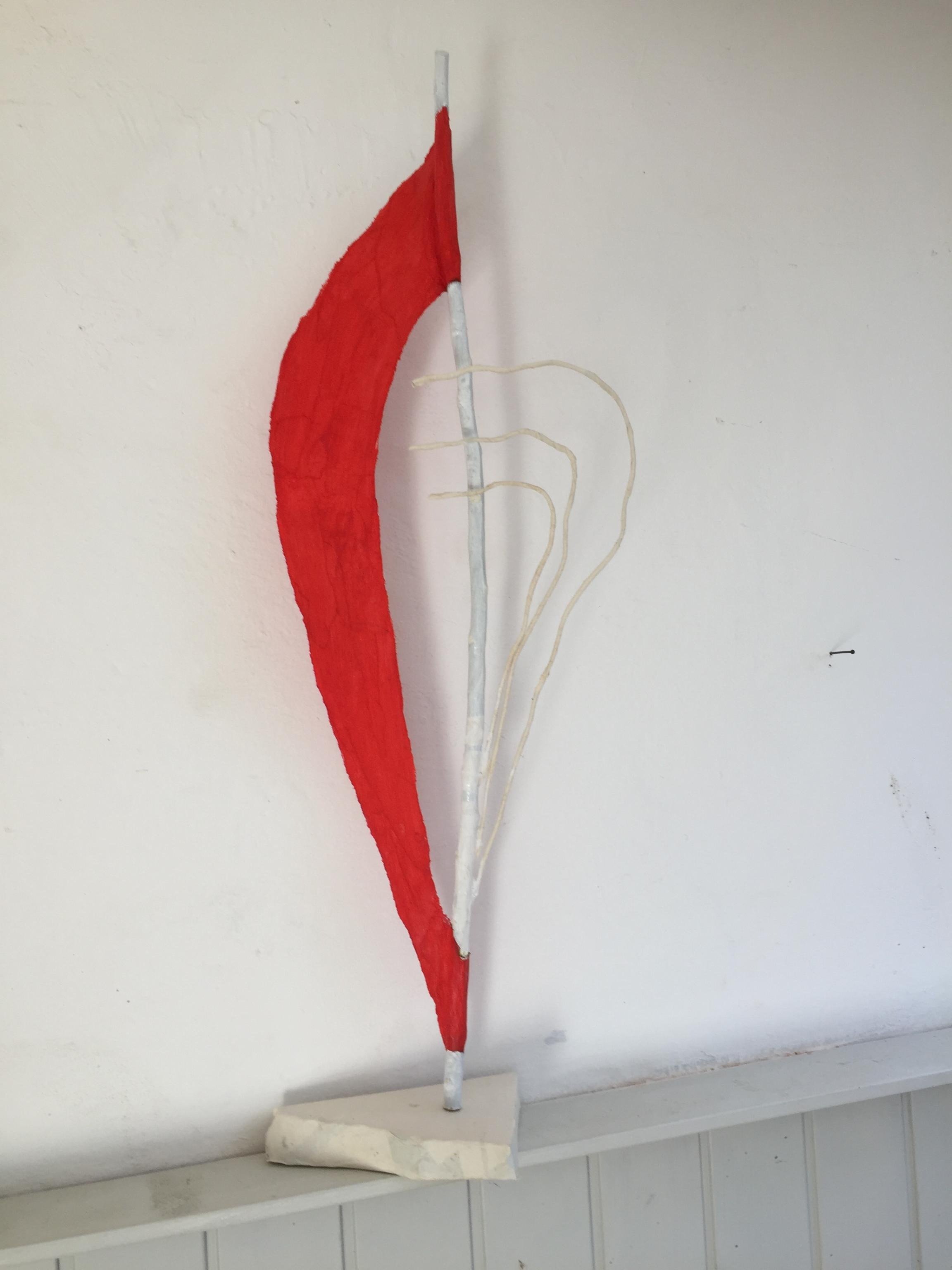 "rote Leichtigkeit" 120 x 30 x 25cm Holz, Papier, Farbe